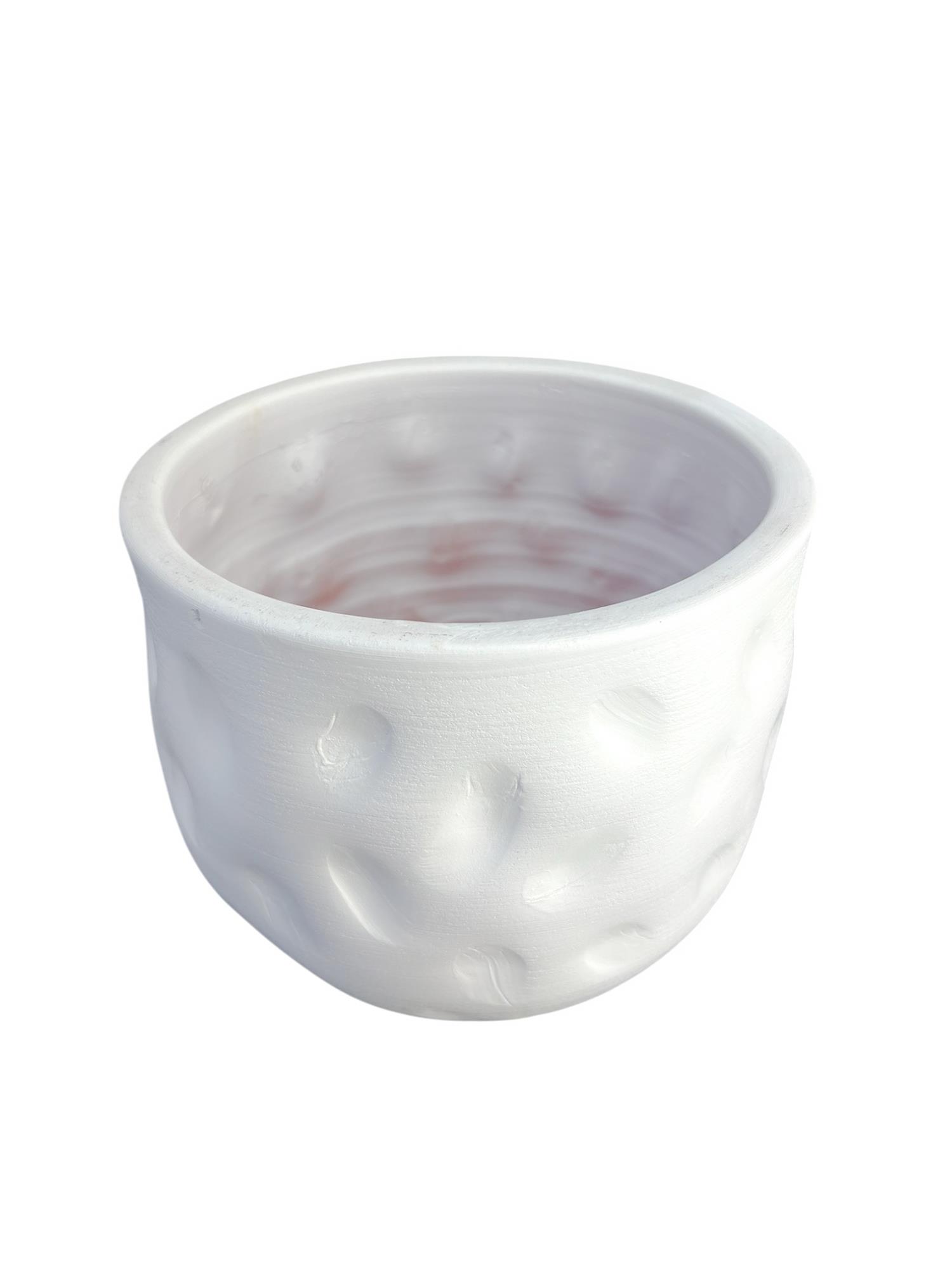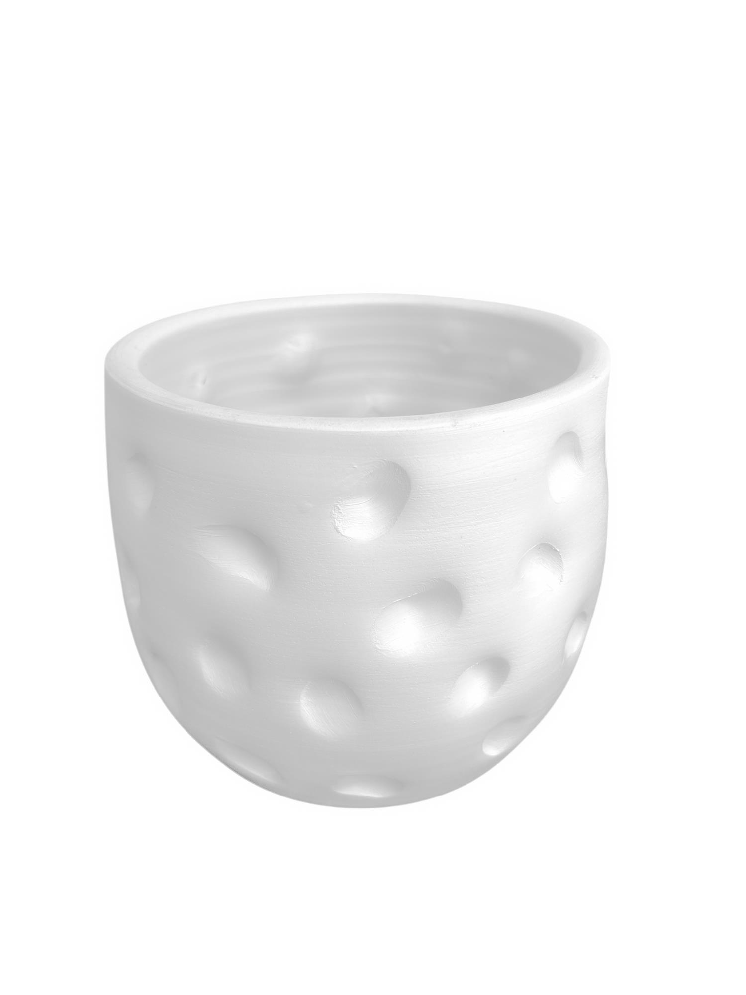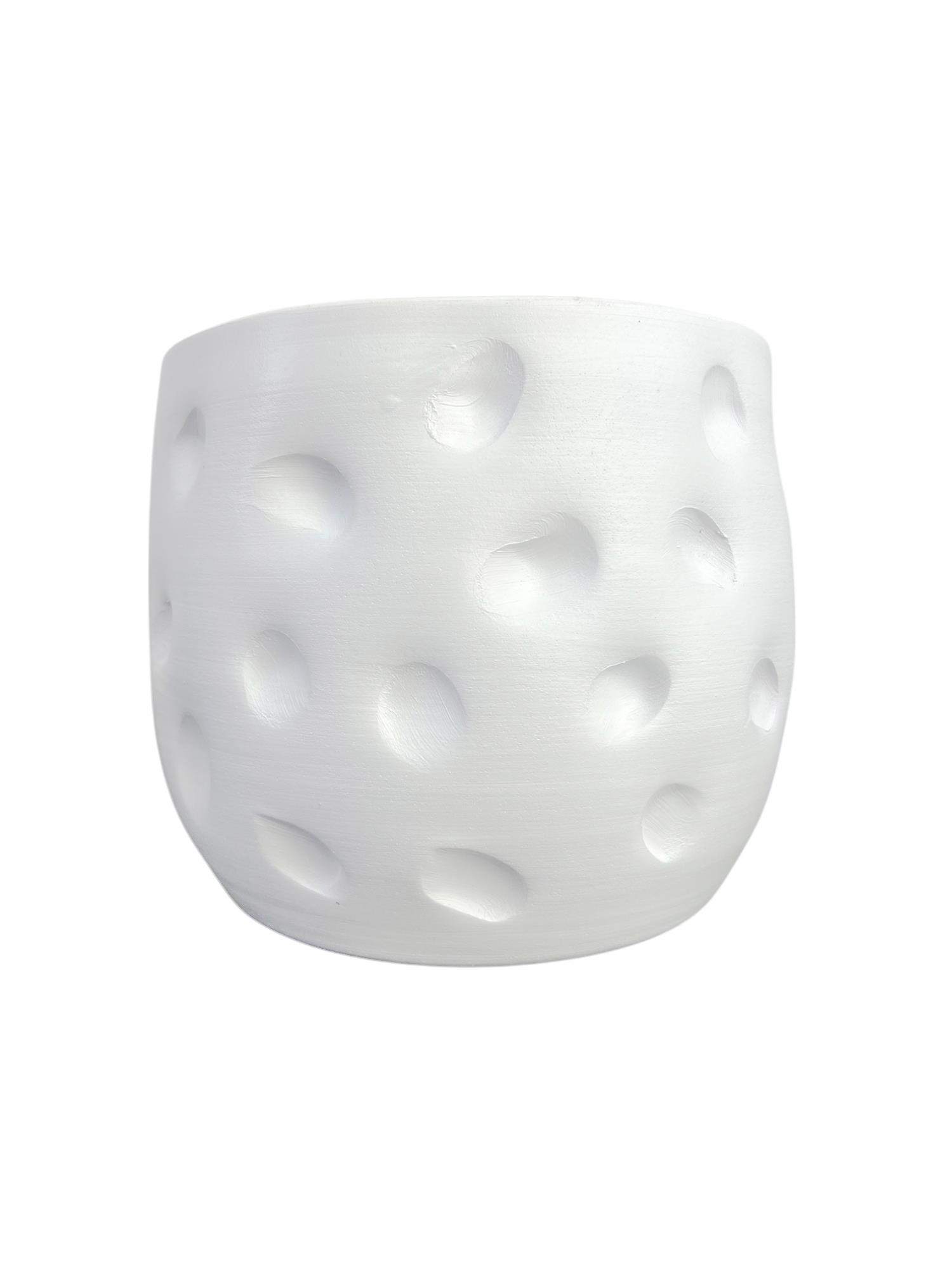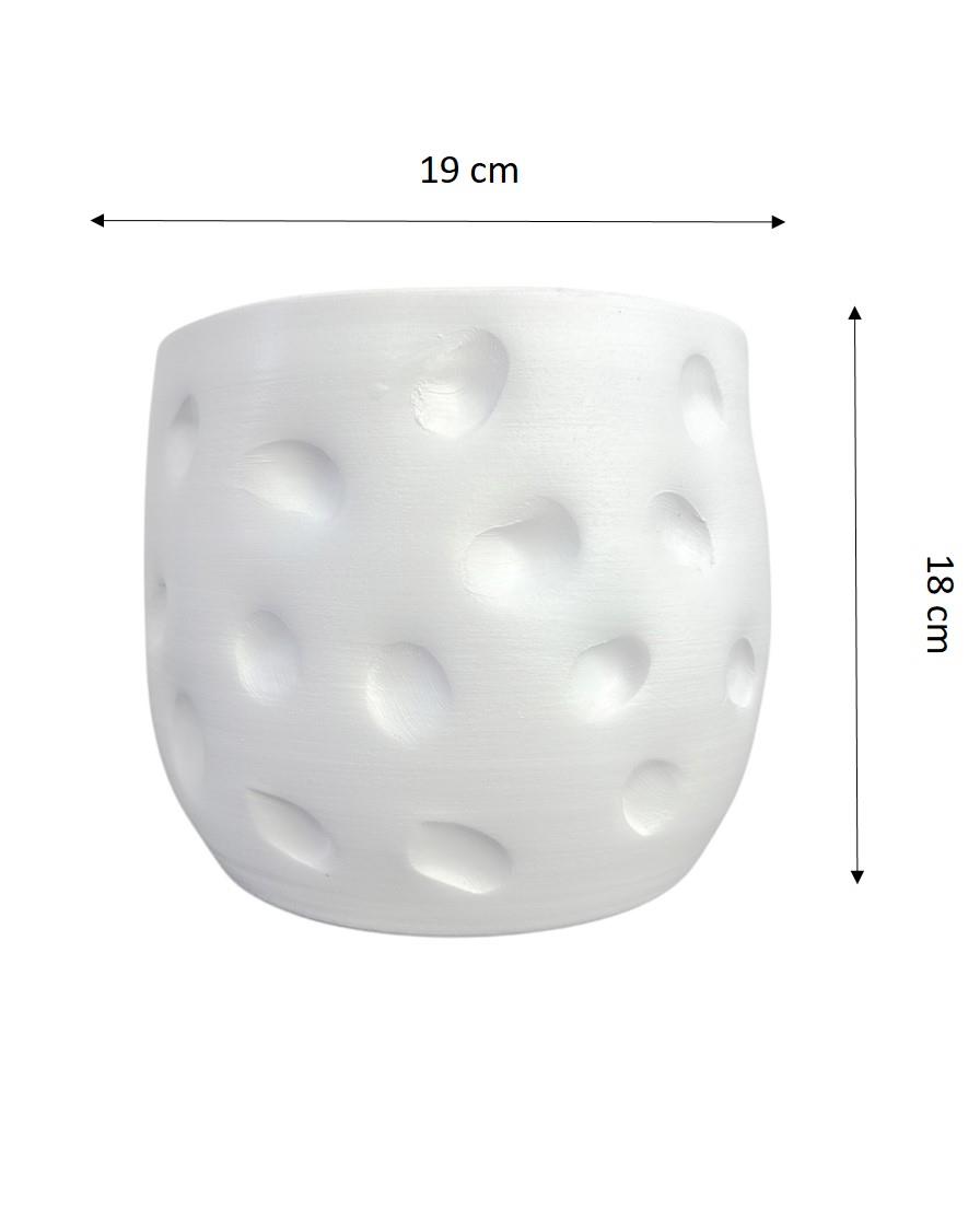 Bitki Tasarımı Beyaz Desenli Toprak Saksı Saksılık Salon Çiçeklik - 19 CM