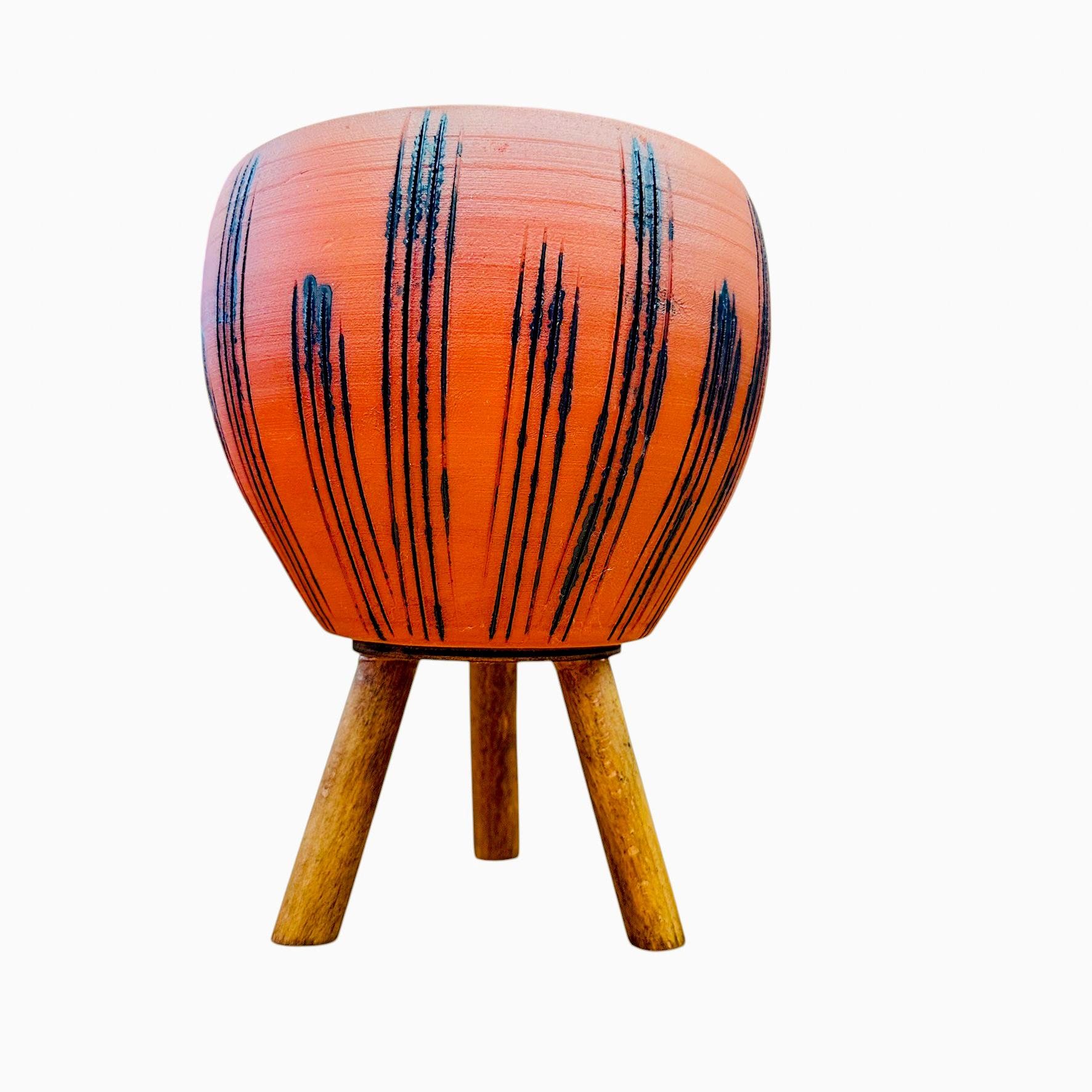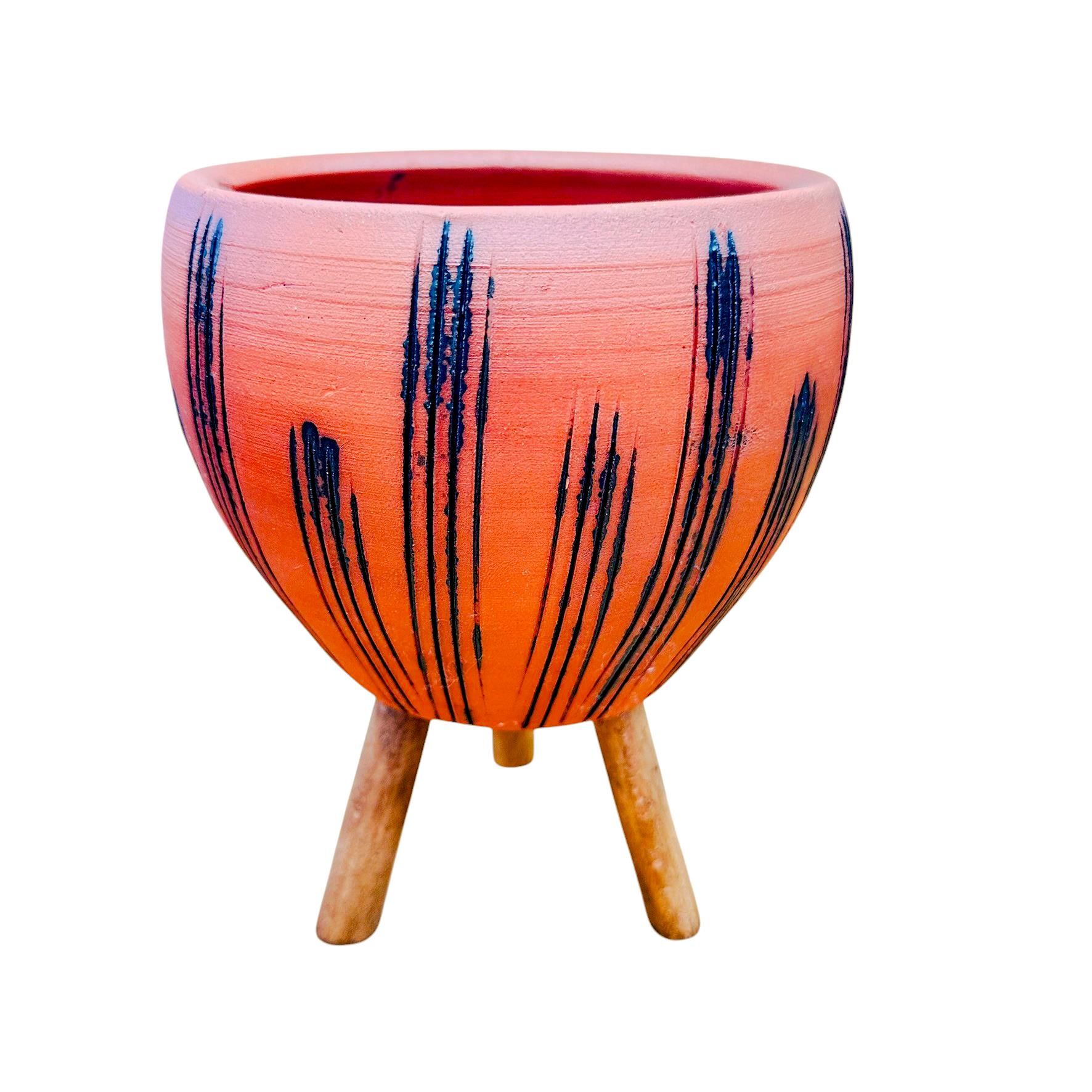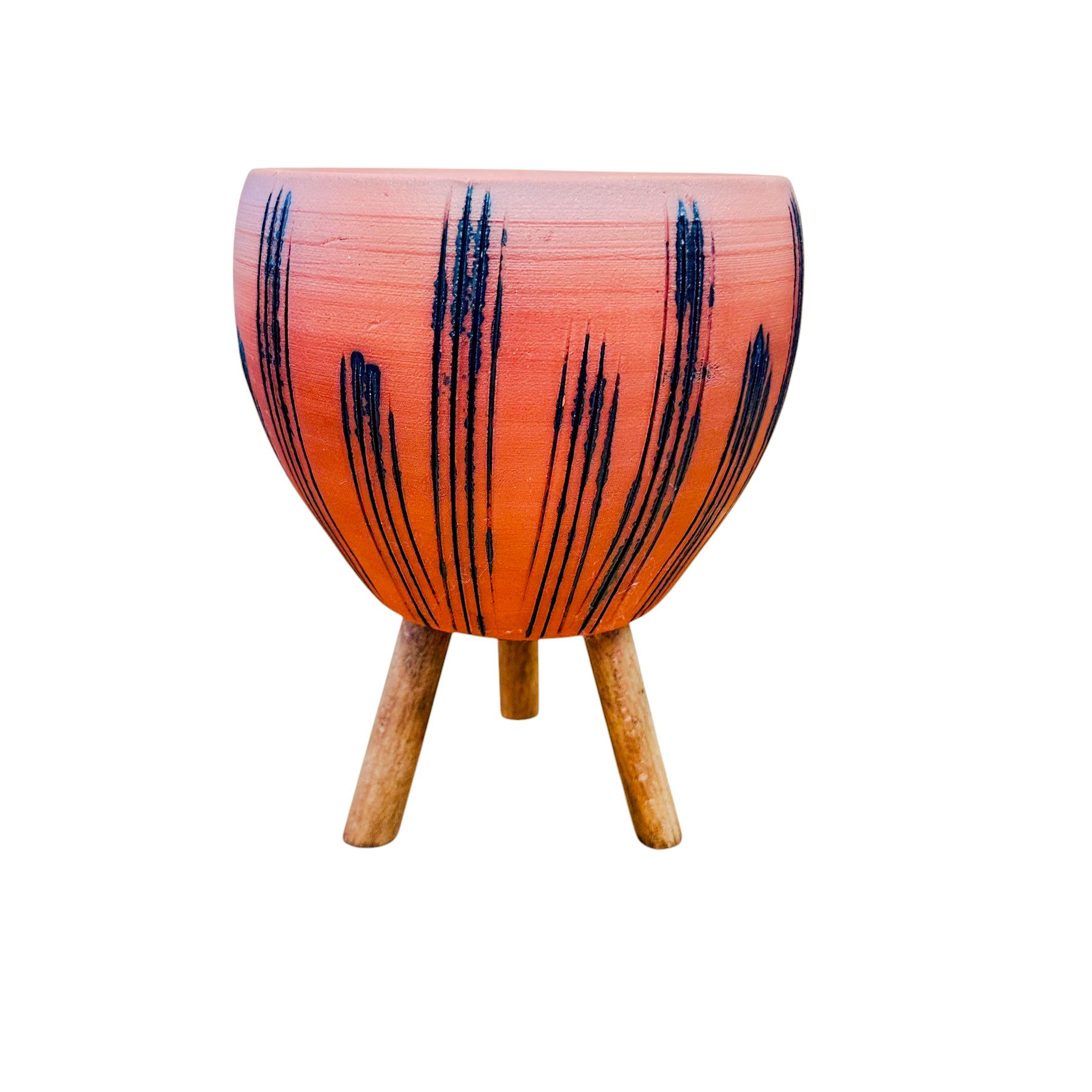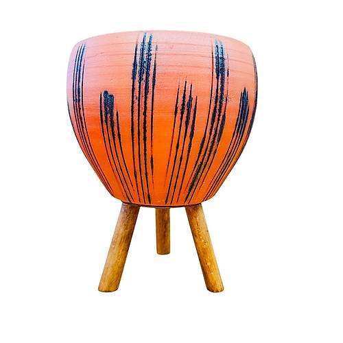Bitki Tasarımı Doğal Siyah Çizgi Desen Terrakota Toprak Saksı 3 Ayaklı 15 cm