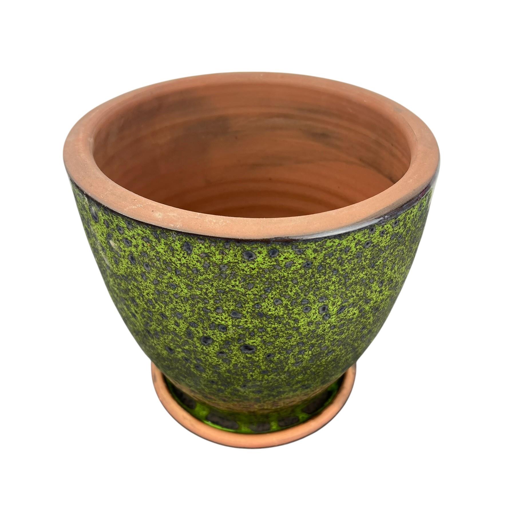 Bitki Tasarımı Solina Yeşil Şekilli Çift Sırlı İç ve Dış Mekan Kullanımlı Toprak Terrakota Tabaklı Saksı