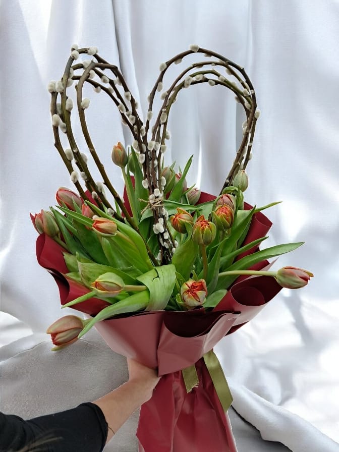 Sevginin en saf ve anlamlı hâli… Kalp formunda açan özel tasarım laleler, duyguların doğrudan kalpten kalbe aktarılmasını simgeliyor. Zarif duruşu ve romantik anlamıyla bu buket, “seni seviyorum” demenin en içten yolu.
