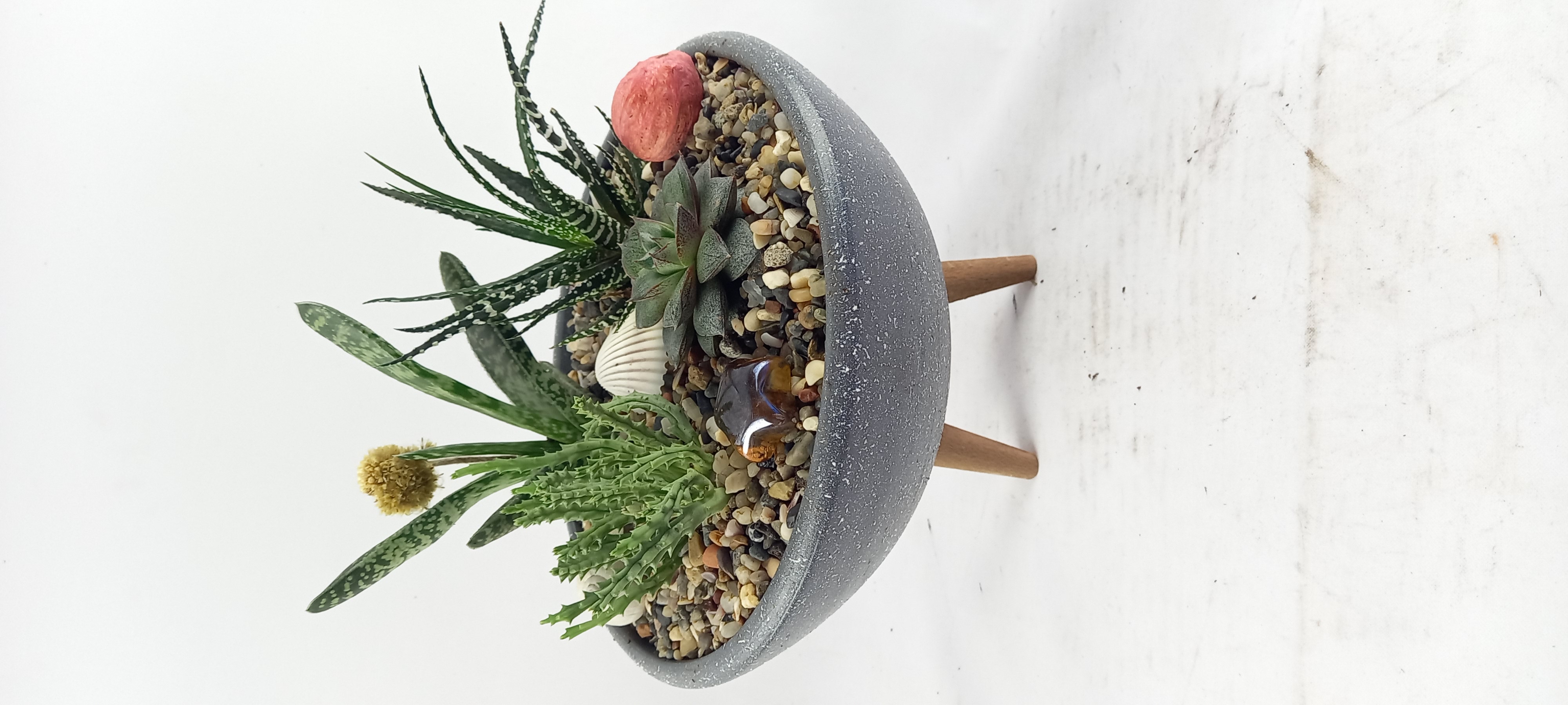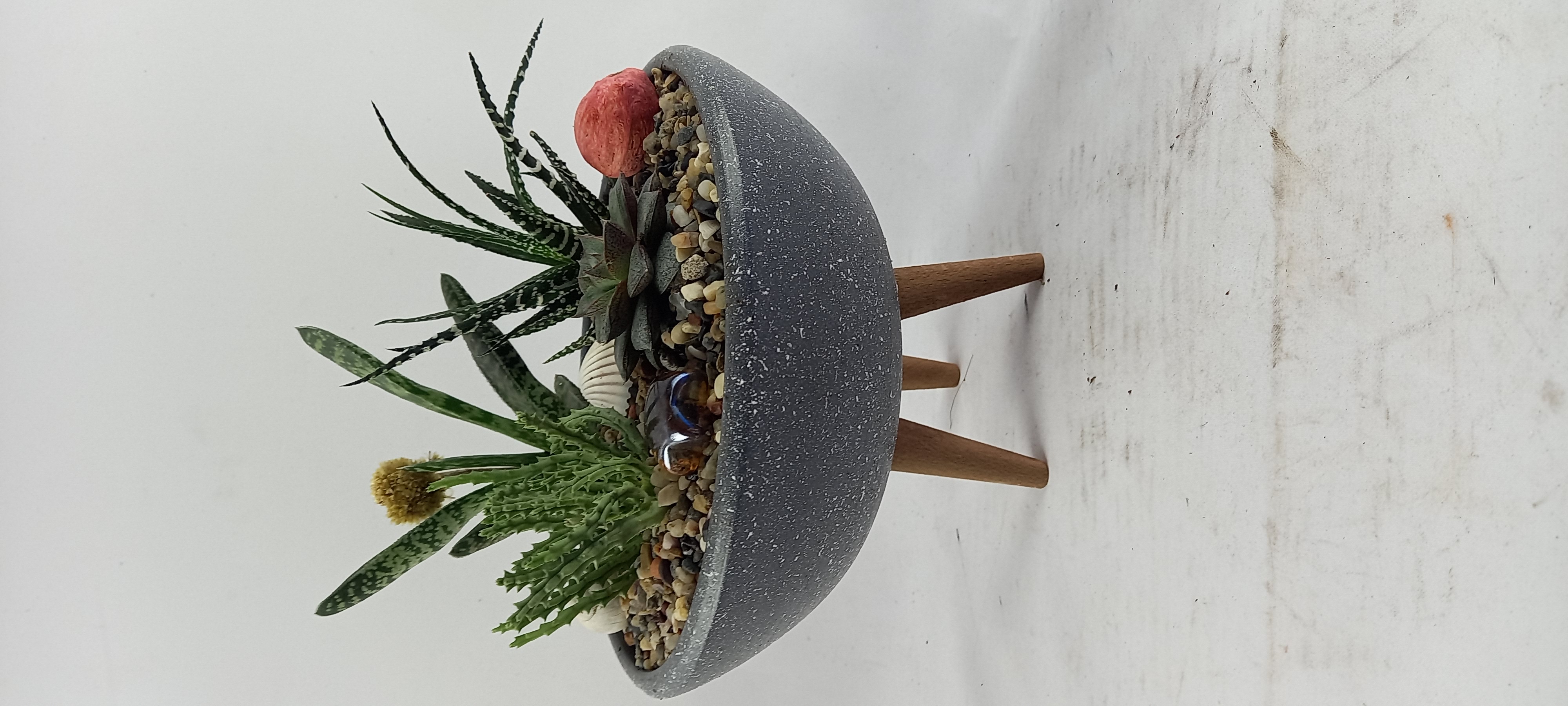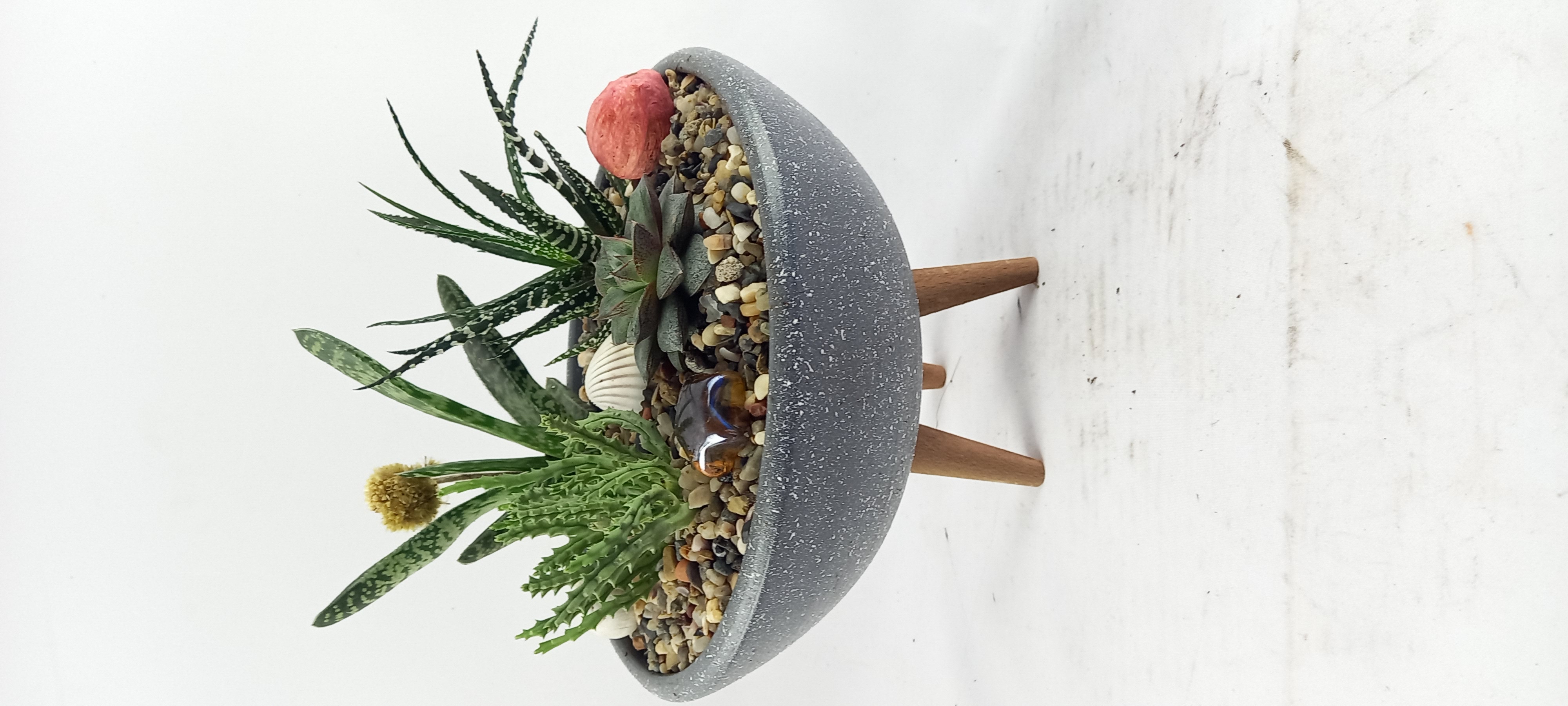 SAKSI BOYU 7 CM ,ÇAPI 20 CM ,BİTKİLİ BOYU 22 CM DİR., -1, +1 BOYLARINDA FARKLILIK OLABİLİR, EL YAPIMI TOPRAK SAKSIDIR. Sukkulentler kışın iki haftada bir sefer sulanmalı. Yazın haftada bir sulanabilir. Yine de sulamadan nce toprağın tamamen kuru olduğundan emin olunmalıdır. Bol aydınlık ortamları sever